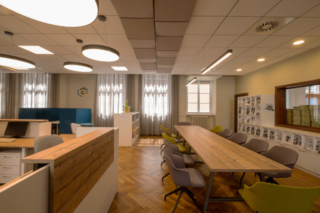 - Lieux de travail : bureaux, salles de cours, salles spécialisées, laboratoires, espaces de réunions physiques et en visio, centre de documentations