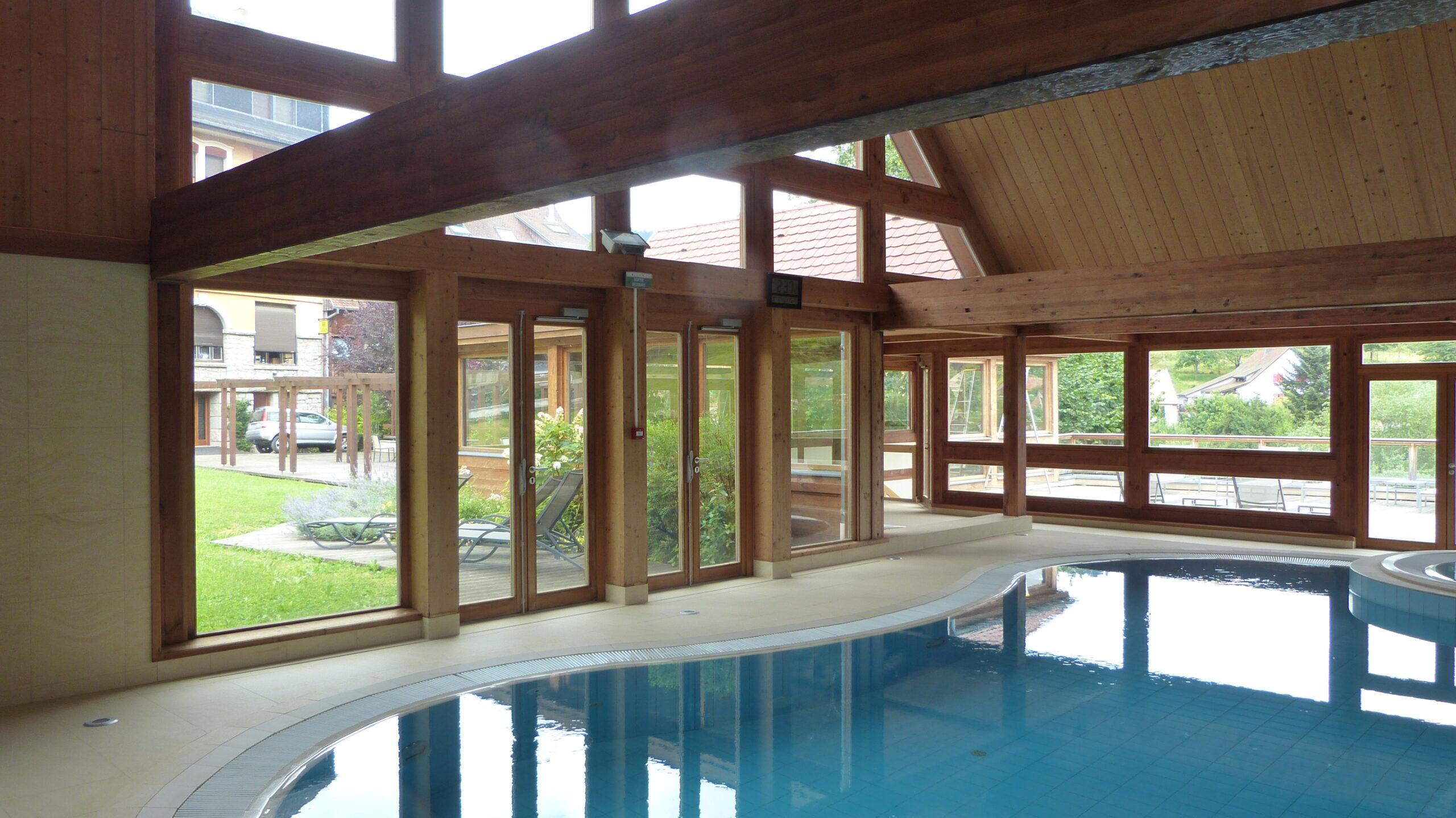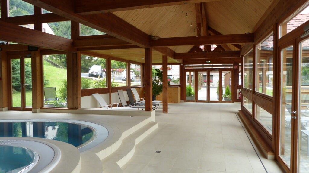 Construction d’une véranda, d’une terrasse et d’une piscine dans une ambiance chaleureuse avec des matériaux sobres et naturels.